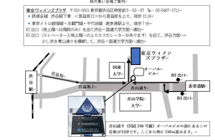 場所:東京ウィメンズプラザ視聴覚室(地下鉄表参道駅、国連大学横、案内図は下記に掲載)