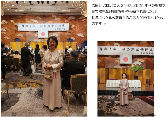 群馬支部会員 吉田シヅエ氏叙勲