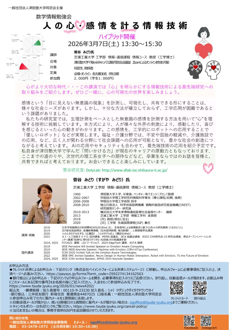 2025年度数学情報勉強会では、菅谷みどり氏(芝浦工業大学工学部教授)に